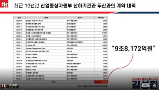 ◆ 산업부 vs 두산그룹 이해충돌 논란…김정관 "경쟁력 있었다"