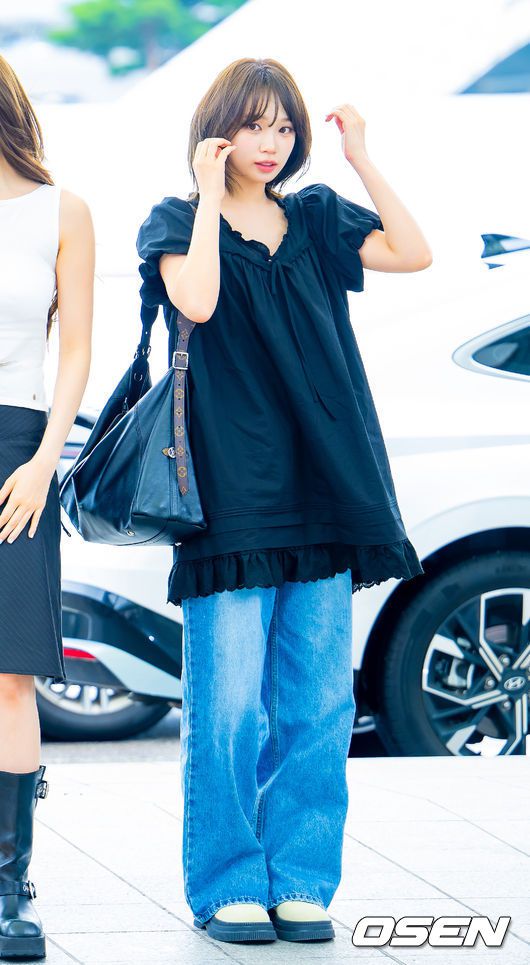 [OSEN=인천공항, 민경훈 기자] 그룹 르세라핌(LE SSERAFIM)이 17일 오후 인천국제공항을 통해 해외 일정 참석 차 출국했다. 그룹 르세라핌의 멤버 김채원, 사쿠라, 허윤진, 카즈하, 홍은채는 월드 투어를 위해 이날 타이베이로 출국했다. 르세라핌 김채원이 출국길에 포즈를 취하고 있다. 2025.07.17 / rumi@osen.co.kr