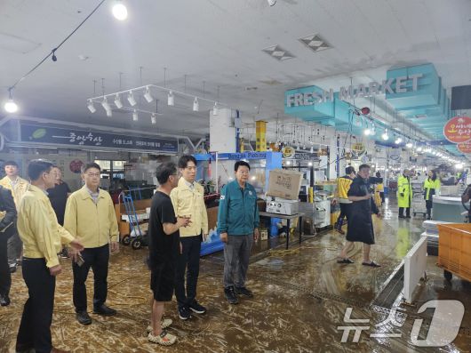(서울=뉴스1) = 노용석 중소벤처기업부 차관이 17일 집중호우로 피해를 입은 충남 당진 전통시장을 방문해 수해 피해 및 복구 상황을 점검하고 있다. (중소벤처기업부 제공. 재판매 및 DB 금지) 2025.7.17/뉴스1photo@news1.krCopyright ⓒ 뉴스1. All rights reserved. 무단 전재 및 재배포, AI학습 이용 금지.