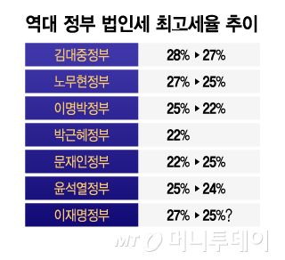 역대 정부 법인세 최고세율 추이/그래픽=이지혜 |
