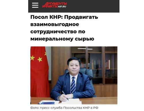 17일 중국 외교부에 따르면 장한후이 주러시아 중국대사는 러시아 플랫폼 ‘논쟁과 사실’에 ‘광산업의 안정 유지와 상생협력 촉진’이란 제목의 기고를 보냈다. 중국 외교부 홈페이지에도 실린 기고는 중국이 희토류를 무기화하며 광물 생산국인 아프리카 등지에서 새로운 제국주의 정책을 펼치고 있다는 주장에 대한 반박을 담고 있다.
