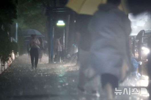 [서울=뉴시스] 조성우 기자 = 강한 비가 내리는 17일 서울 서초구 인근 거리에서 우산을 쓴 시민들이 이동하고 있다. 2025.07.17. xconfind@newsis.com |