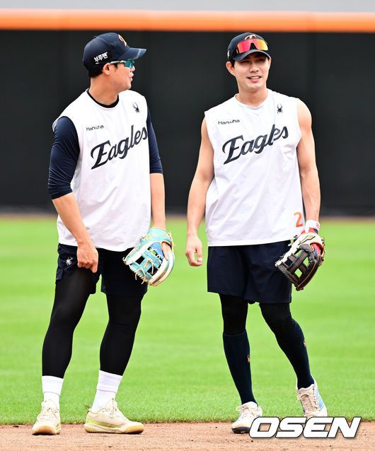[OSEN=대전, 지형준 기자] 14일 대전 한화생명볼파크에서 2025 신한 SOL Bank KBO리그 한화 이글스와 LG 트윈스의 경기가 열렸다.LG가 40승 26패 1무(승률 .606)로 1위, 한화는 40승 27패(승률 .597)로 2위다. 0.5경기 차이다. 경기 결과에 따라 1위가 바뀔 수도 있다.이날 한화는 폰세, LG는 임찬규를 선발로 내세웠다.한화 하주석, 심우준이 경기에 앞서 훈련을 하고 있다. 2025.06.14 /jpnews@osen.co.kr |
