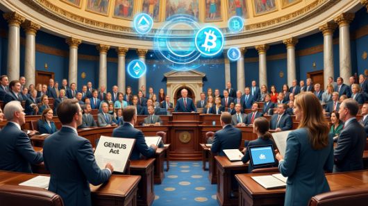 미국 의회가 암호화폐 규제 법안을 통과시키면서 제도화가 가속될 전망이다. [사진: Reve AI] |