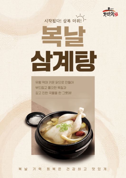 치킨 프랜차이즈 가마치통닭이 무더운 여름 복날 맞이 영양가득 보양식을 찾는 고객들을 위해 가정에서 간편하게 조리가능한 삼계탕 HMR 제품을 판매한다고 밝혔다.