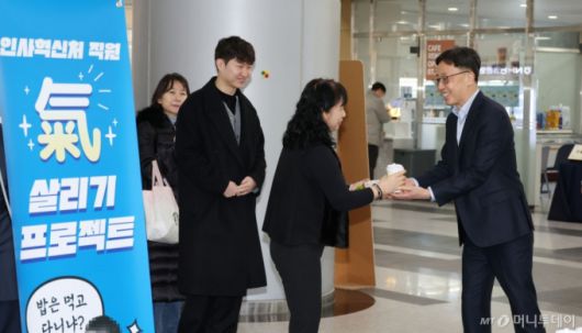 (서울=뉴스1) = 연원정 인사혁신처장이 20일 세종시 정부세종청사에서 출근길 직원들에게 간식을 나눠주고 있다. 이번 행사는 '인사혁신처 직원 기(氣) 살리기 프로젝트'의 일환으로 열렸다. (인사혁신처 제공) 2025.1.20/뉴스1 Copyright (C) 뉴스1. All rights reserved. 무단 전재 및 재배포, AI학습 이용 금지. /사진=(서울=뉴스1) |