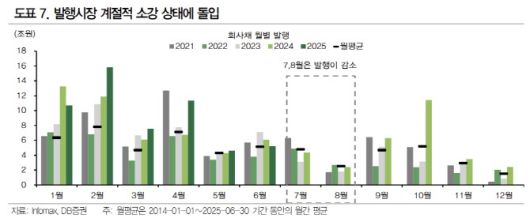 계절적 소강상태에 돌입한 회사채 발행시장. (자료=DB증권) |