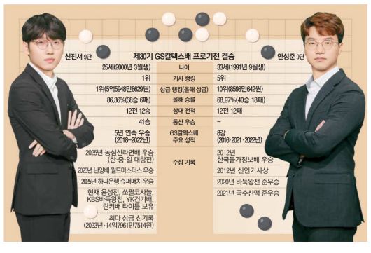 신진서와 맞붙을 안성준은 상대 전적에서 12전 12패로 밀린다. 이번 대회에서도 본선 첫 경기인 16강전에서 신진서를 만나 패한 뒤 치열한 패자조를 거쳐 결승에 올라왔다.