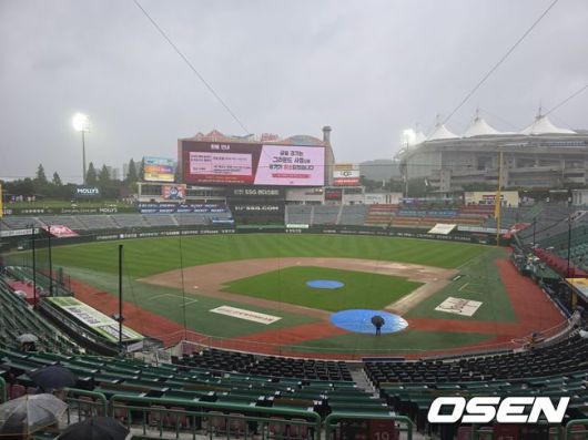 방수포를 설치한 뒤 잠시 기다렸지만 비는 그치지 않고 계속됐고 결국 김시진 감독관은 오후 5시26분경 경기 취소를 결정했다.