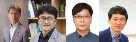 포스텍이 국내 대학 최초로 도입한 ‘정년연장 조기결정제도’의 첫 수혜자 4인을 17일 발표했다. 왼쪽부터 이현우 물리학과 교수(55세), 정운룡 신소재공학과 교수(53세), 한욱신 컴퓨터공학과 교수(53세), 민승기 환경공학부 교수(52세)./포스텍 |