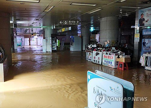물에 잠긴 광주 상무역(광주=연합뉴스) 호우 특보가 발효된 17일 오후 광주 서구 마륵동 상무역사가 빗물에 잠겨 있다. 2025.7.17 [광주시 제공. 재판매 및 DB 금지] daum@yna.co.kr ▶제보는 카카오톡 okjebo▶연합뉴스 앱 지금 바로 다운받기~▶네이버 연합뉴스 채널 구독하기<저작권자(c) 연합뉴스, 무단 전재-재배포, AI 학습 및 활용 금지>