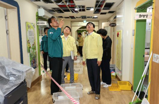 윤 교육감은 회의를 마친 뒤 비봉유치원 등 비 피해가 발생한 학교를 잇따라 방문해 복구 현장을 점검했다.
