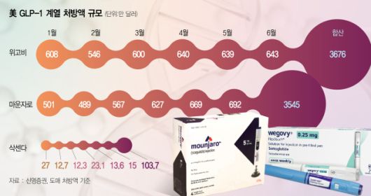 올 상반기 미국 내 글루카곤유사펩타이드(GLP-1) 계열 약물의 도매 처방액이 10조 원을 넘어선 것으로 집계됐다. 비만·당뇨 치료 수요가 확대되면서 GLP-1 계열의 치료제가 대세로 확실히 자리잡으며 급성장을 이어가고 있다. 효능과 접종 편의성을 강화한 노보 노디스크의 ‘위고비’와 일라이 릴리의 ‘마운자로’가 시장을 양분했으며, 기존 강자였던 ‘삭센다’는 판매가 급감했다. 국내 제약·바이오 업계도 이같은 흐름을 타고 GLP-1 관련 신약과 신규 제형 개발에 박차를 가하고 있다.