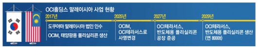 OCI홀딩스가 일본기업 도쿠야마와 함께 말레이시아에 반도체용 폴리실리콘 생산기지를 구축한다.