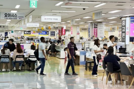 5일 서울 광진구 강변테크노마트 6층 휴대전화 집단상가. /사진=성시호 기자 |