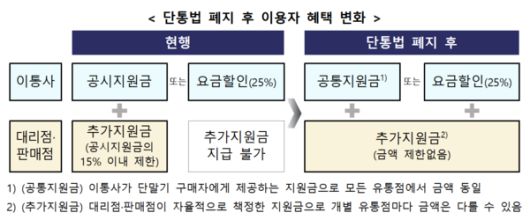 이에 따라 단통법 하에서 음성적으로 지급되던 초과 지원금(공시지원금의 15% 초과)도 공개적으로 지급될 수 있다.