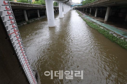 폭우가 내린 17일 서울 관악구 신림동 도림천 신대방역 일대에 홍수의 흔적이 보이고 있다. 이날 환경부 한강홍수통제소는 오전 9시 20분부로 신대방1교 지점에 홍수주의보를 발령했다 11시 10분 해제됐다. (사진=이영훈 기자) |