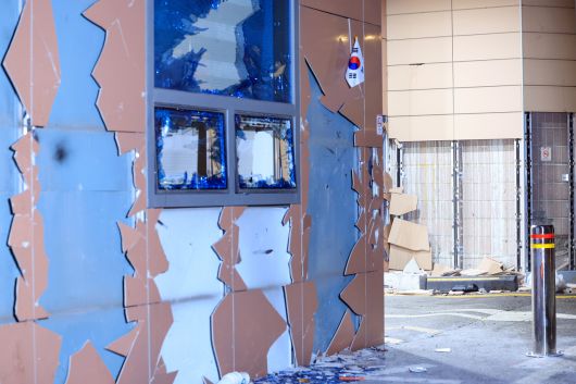 지난 1월 19일 서울 마포구 서울서부지방법원의 창과 외벽 등이 파손돼 있다. [연합] |