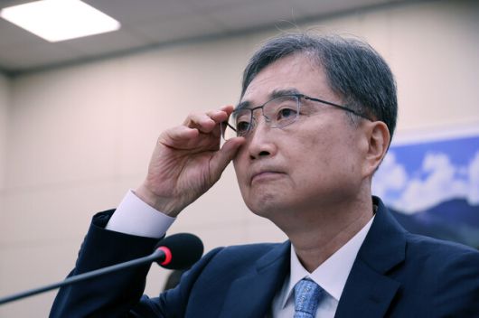 조현 외교부 장관 후보자가 17일 서울 여의도 국회 외교통일위원회에서 열린 인사청문회에서 안경을 고쳐 쓰고 있다. 연합뉴스 |