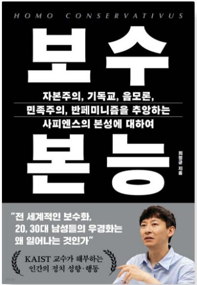 인간유전체학을 연구하는 카이스트 바이오및뇌공학과의 최정균 교수는 전작 <유전자 지배 사회>에서 혐오와 같은 인간의 본능적인 감정부터 종교와 경제 등 현대 사회의 다양한 지점을 진화적 관점으로 해석했다. 당시 책의 한 장을 할애해 보수와 진보에 대해 다뤘다. 이번엔 한 권의 책으로 ‘보수’만 다룬다. 하필이면 왜 보수인가에 주안점을 두고 읽다 보면 지금 한국 사회의 문제적 화두로 떠오른 한 현상과 마주한다. ‘젊은 남성층의 보수화’다.