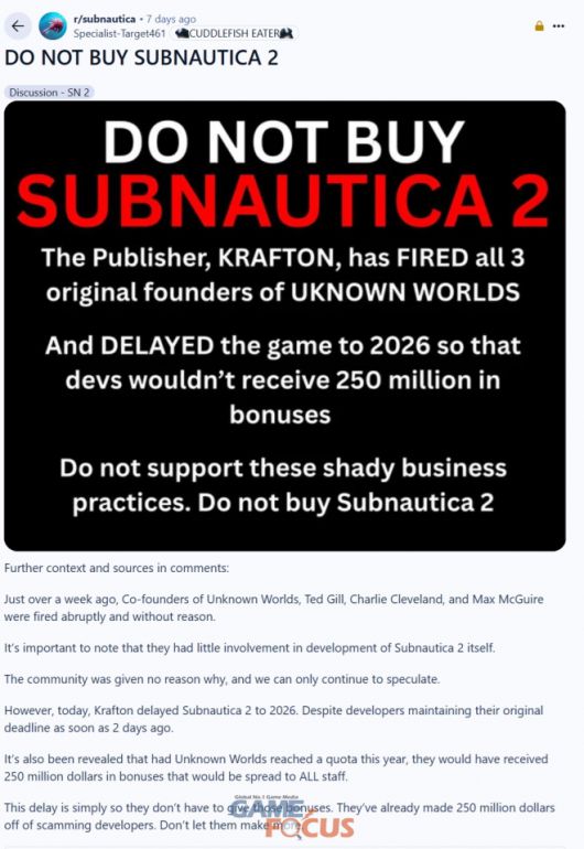 해당 내용이 공개되자 레딧을 포함한 전세계 주요 커뮤니티들은 일방적인 해고 조치를 한 크래프톤을 향한 비판의 목소리를 이어나갔고 일각에선 ‘서브노티카2’에 대한 불매 운동이 진행되기 시작했다.