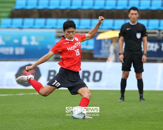 [스포티비뉴스=태백, 곽혜미 기자] 제 61회 추계대학축구연맹전 백두대간기 홍익대와 단국대의 결승전이 17일 오후 강원도 태백종합운동장에서 열렸다. 홍익대 최현우가 승부차기에서 첫 번째 키커로 나서고 있다. <저작권자 ⓒ SPOTV NEWS. 무단전재 및 재배포 금지>