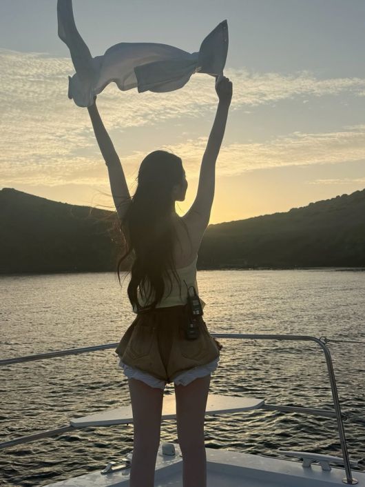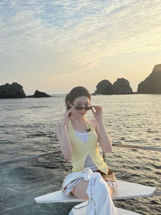요트 위에서 선글라스를 쓰고 신선한 공기를 마시며 여유롭게 앉아 있는 모습이 보였다. 다른 사진 속 슈화는 얼굴에서 빛나는 모습이다.