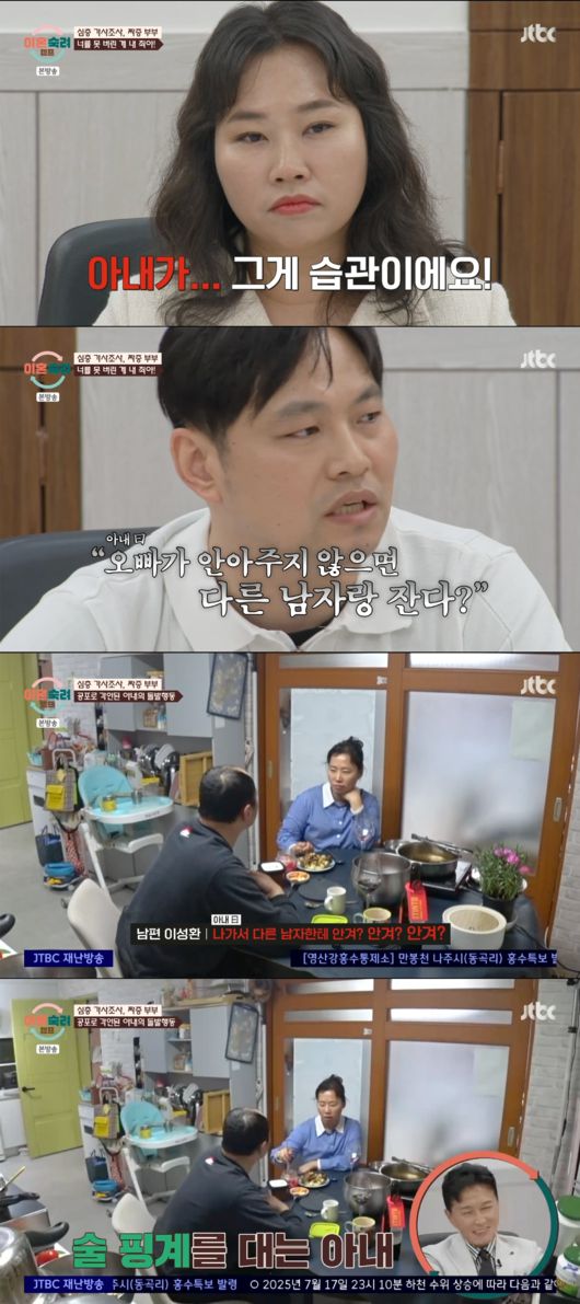이어 아내는 술 먹고 새벽 3~4시에 집으로 돌아와 남편에게 “나 안 안아주면 다른 남자한테 안긴다”라고 말했다고 밝혀 모두를 충격에 빠지게 만들었다.
