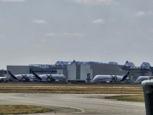 툴루즈 블라냐크 공항에 주기돼 있는 A330-743L 항공기. 에어버스가 유럽에 공장이 흩어져 있는 사업장에서 생산한 부품을 툴루즈 공장으로 옮겨오는 초대형 수송기다. 이 항공기는 기수의 독특한 모양이 흰고래를 닮았다고 해서 ‘벨루가’라 불린다. 이철재 기자 |