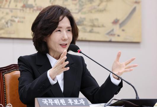 이진숙 사회부총리 겸 교육부 장관 후보자가 16일 국회 교육위원회에서 열린 인사청문회에서 질의에 답하고 있다. /남강호 기자 |