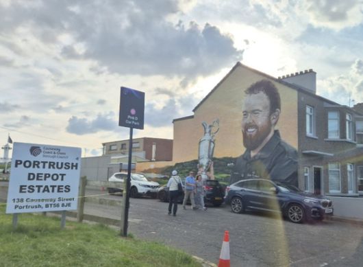 포트러시 마을의 셰인 라우리 벽화. 라우리는 아일랜드 선수임에도 2019년 디 오픈에서 우승해 포트러시에 벽화로 그려졌지만 북아일랜드 내의 갈등이 완전히 사라진 건 아니다. 성호준 기자 |