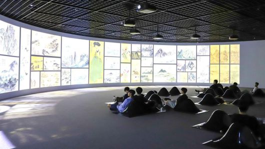 대구간송미술관을 찾은 관람객들이 실감 영상 전시물을 감상하고 있다. 대구간송미술관 제공 |