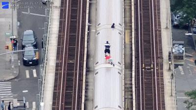 경찰이 촬영한 드론 영상에는 네 명의 청소년이 빠르게 달리는 열차 지붕 위로 기어오른 뒤 일렬로 서서 휴대폰을 꺼내는 모습이 담겼다. 이들은 몇 번 점프하고 몸을 흔들기도 한다.