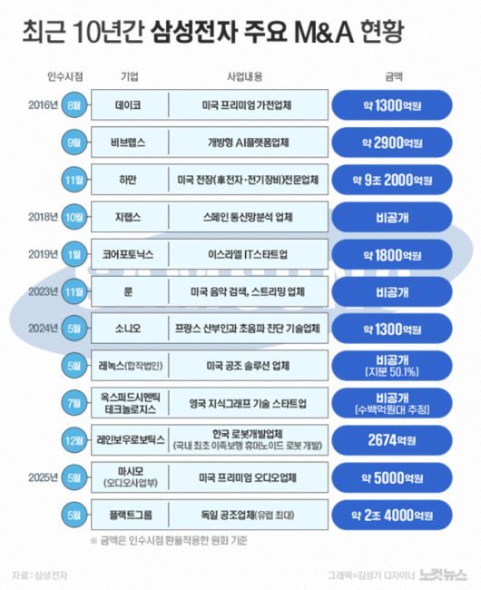 다행스러운 건 지난 2월 2심 무죄 선고 후부터 삼성의 사업 재편과 이 회장의 글로벌 행보가 속도감 있게 이뤄지고 있다는 점이다. 한동안 중단됐던 M&A은 올해만 세 차례 이뤄졌고, 최근엔 하만 이후 9년 만에 조 단위 M&A가 성사됐다.
