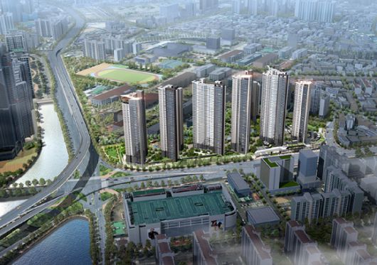 부산 남구 대연4구역 재개발로 들어선 '더비치 푸르지오 써밋' 아파트 조감도. [사진=대우건설] |