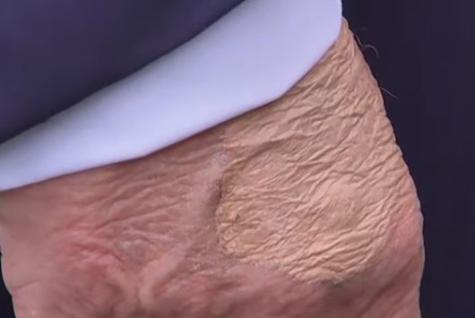 16일(현지시간) 데일리메일이 공개한 도널드 트럼프 미국 대통령 손등의 화장 자국. 전날 기자단과의 자리에서 찍힌 사진이라고 한다. 화장 자국이 멍 자국을 가리기 위한 것이란 주장이 나오면서 트럼프 대통령의 건강이상설이 다시 불거지고 있다. 데일리메일 캡처
