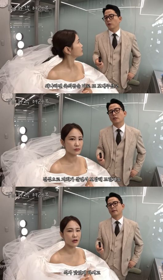 김준호는 "사실 일요일이라 공연 있고 행사 있어서 못 오시는 분들이 많은데, 그분들도 감사드린다. 왜냐하면 축의금을 따로 보내주셨다"며 결혼식에 직접 참석하지 못하고 마음만 전한 지인들에게도 감사를 표했다.