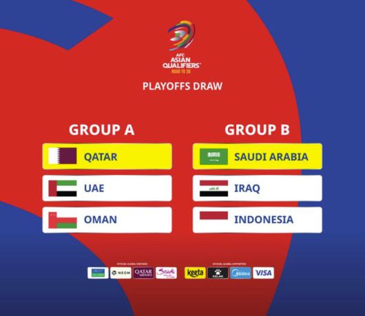 아시아축구연맹(AFC)은 17일(한국시간) 말레이시아 쿠알라룸푸르 AFC 본사에서 2026 FIFA 북중미 월드컵 4차 예선 대진 추첨을 진행, 카타르·아랍에미리트(UAE)·오만이 A조에, 사우디아라비아·이라크·인도네시아가 B조에 각각 배정됐다고 발표했다.