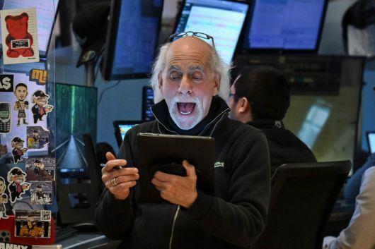 미국 뉴욕증권거래소(NYSE)에서 트레이더가 장중 거래를 하고 있다. 〈AFP 연합뉴스〉 |