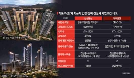 필수 사업비 금리, 대우 'CD+0.0%' vs 삼성 '한도 없는 최저금리'