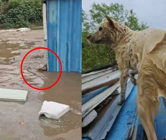 물살이 거셌기 때문에 조금만 더 물이 차면 바로 목숨을 잃을 상황이었다. 애견은 급류에 휩쓸릴 수 있는 위험한 상황이었지만 직접 강아지 구조에 나섰다. 겁에 질린 강아지를 다독인 애견은 목줄을 풀고 자신의 품에 안아 안전한 곳으로 강아지를 옮겼다.