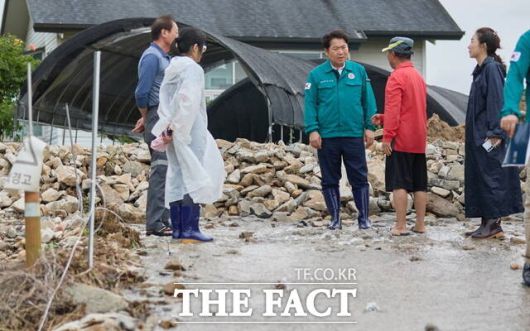 [더팩트ㅣ아산=정효기 기자] 오세현 충남 아산시장이 17일 오후 집중호우로 피해를 입은 지역을 직접 방문해 현장을 점검하고, 대피한 주민들을 위로하며 인명 피해 없는 대응을 약속했다.