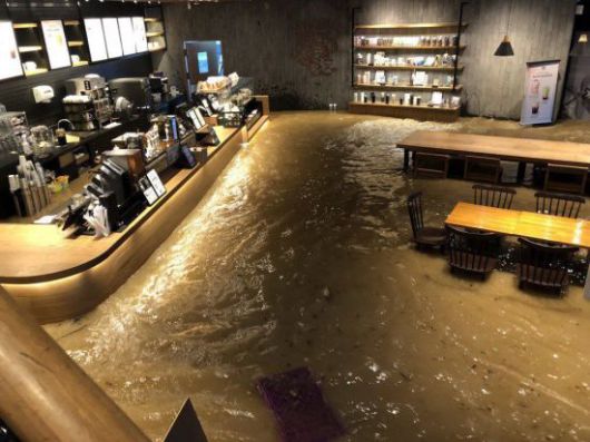 폭우로 침수된 광주 신안동의 한 커피전문점 내부. 흙탕물이 매장 전체를 뒤덮고 있다. |