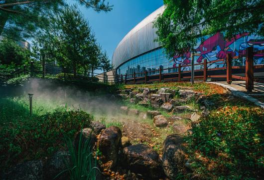 고척스카이돔 근처에 조성된 안개 정원 전경. (사진=서울시설공단) |