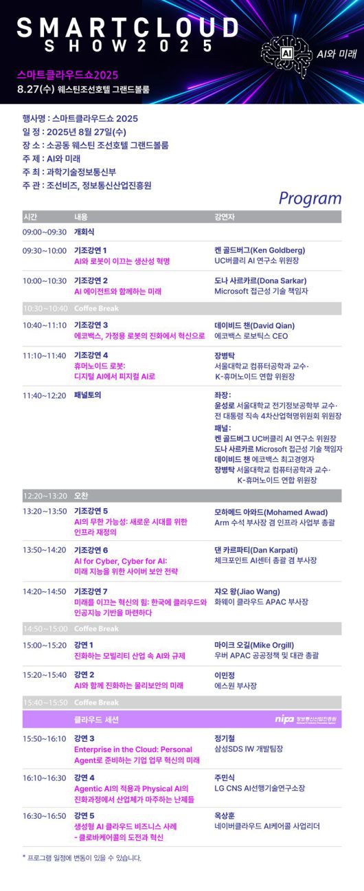 ‘스마트클라우드쇼 2025’는 급변하는 AI 기술의 미래를 조망하고 산업 전반에 걸친 혁신 가능성을 함께 모색하는 자리가 될 것입니다. 관심 있는 분들의 많은 참여를 바랍니다.