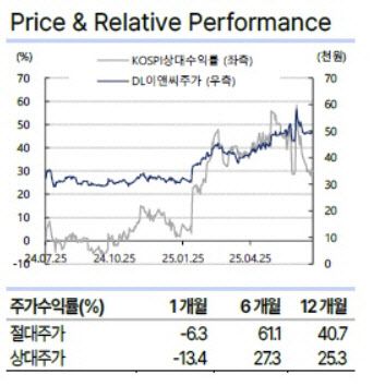 [이데일리 권오석 기자] 교보증권이 DL이앤씨(375500)에 대해 투자의견 ‘매수’, 목표주가 6만 6000원을 유지한다고 18일 밝혔다.