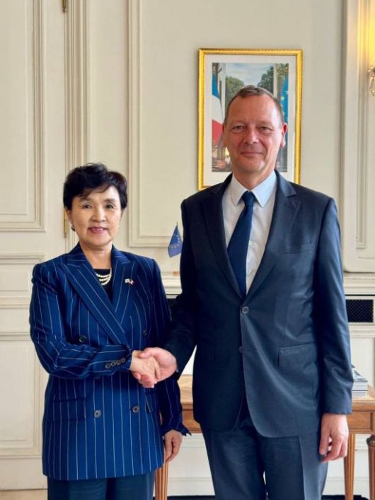 강금실 전 법무부 장관을 단장으로 하는 대통령 프랑스 특사단이 에마뉘엘 본 프랑스 대통령실 외교수석을 만나 이재명 대통령의 친서를 전달했다. 내년이면 '한-프랑스 외교관계 수립 140주년'을 맞는 가운데 특사단은 양국 간 '21세기 포괄적 동반자 관계'를 더욱 심화·발전시켜 나가자는 의지를 전달했다.