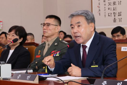 지난해 10월 25일 이종섭(오른쪽) 전 국방부 장관은 법제사법위원회 국정감사에 증인으로 출석했다. 연합뉴스 |