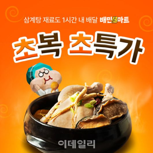 [이데일리 한전진 기자] 배달의민족이 운영하는 장보기 서비스 ’배민B마트’가 초복을 맞아 오는 20일까지 복날 인기상품을 초특가에 판매하는 행사를 진행한다고 18일 밝혔다.