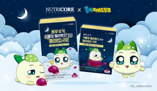 이번 컬래버를 통해 뉴트리코어 ‘로우 슈거 식물성 멜라토닌 함유 멜라바인 구미 패키지’에 ‘쿵야 레스토랑즈’의 아트웍이 반영된 신규 패키지를 선보인다. 패키지는 양파쿵야 인형 키링 1종이 포함된 구성이다.